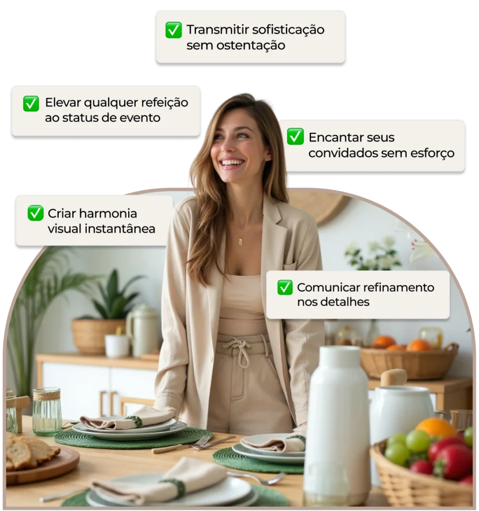 A verdadeira transformação acontece quando você domina os fundamentos da mesa posta e aplica princípios que são responsáveis por: